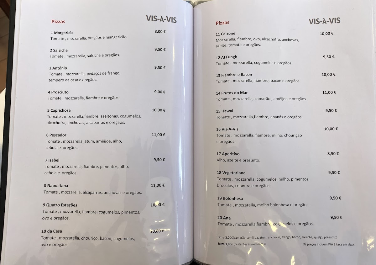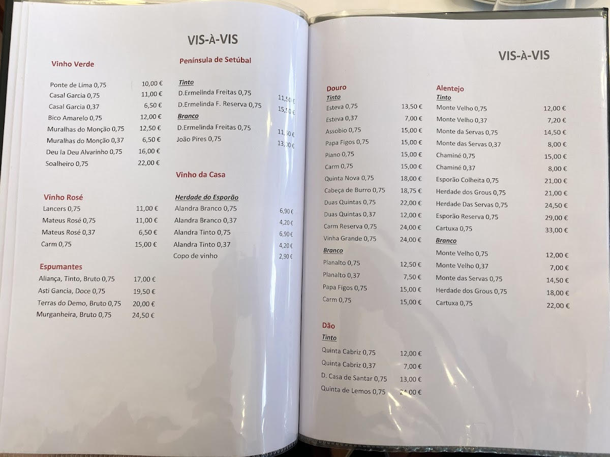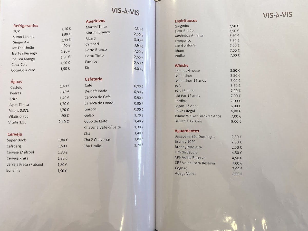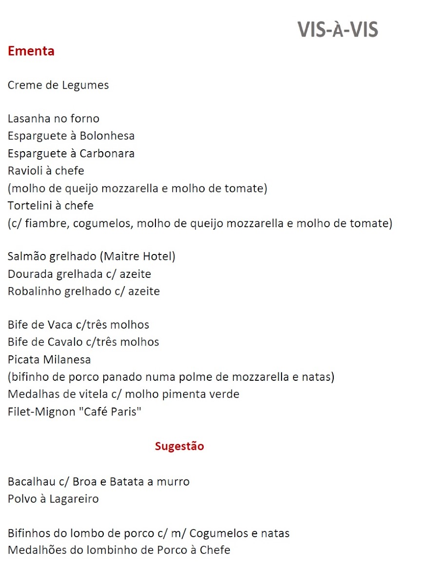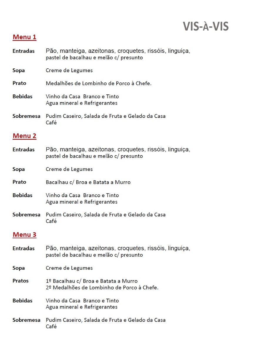 Restaurante Vis-a-Vis (Fátima) Menu